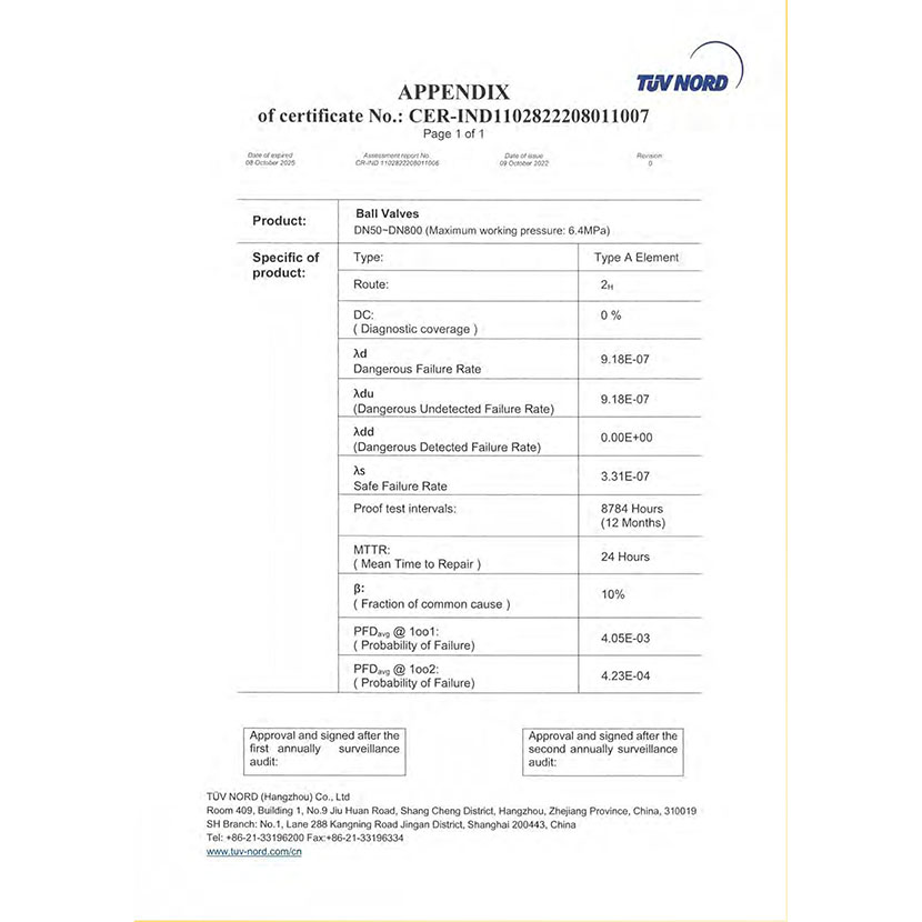 球閥 SIL證書 2