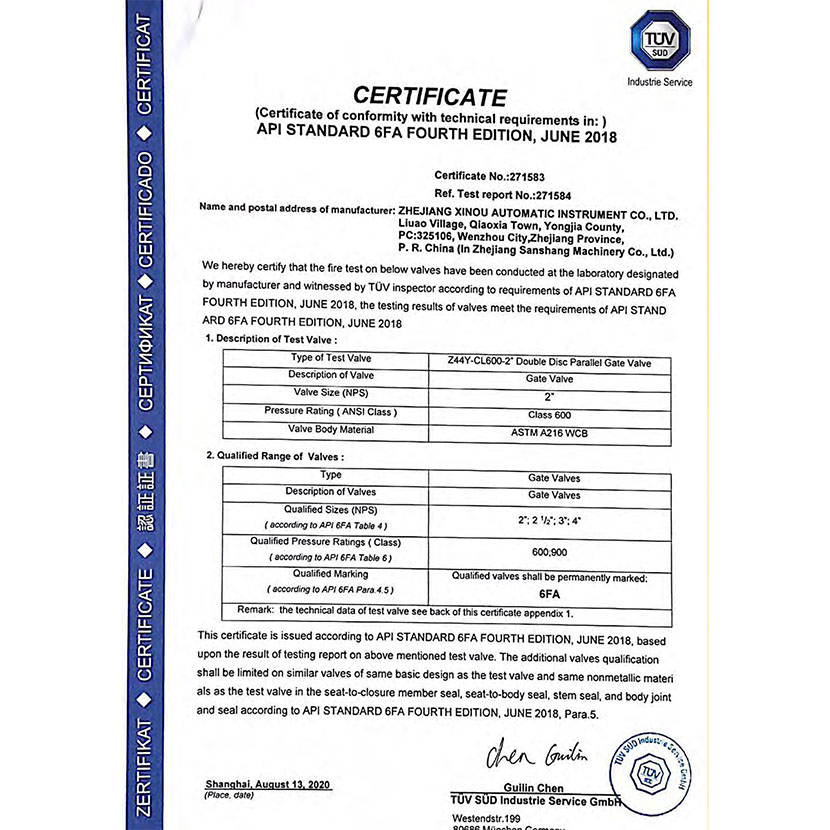 閘閥防火證書 3