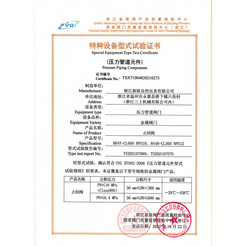 止回閥 型式試驗(yàn)報(bào)告